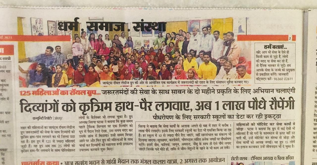Giants Group of Royal Ladies, Jodhpur, Sponsored For Operation Of 125 Patients Who Needed Artificial Limbs ( foot or Hands) Apart From Donating Calipers to Many Polio Affected Patients in The Year 2023. They could make it With the association with Organisation Like Satya Prem Karuna Sansthan. The Group Consists of 125 Housewives Motivated to Do social work by their President Mrs Nirupa Patwa.