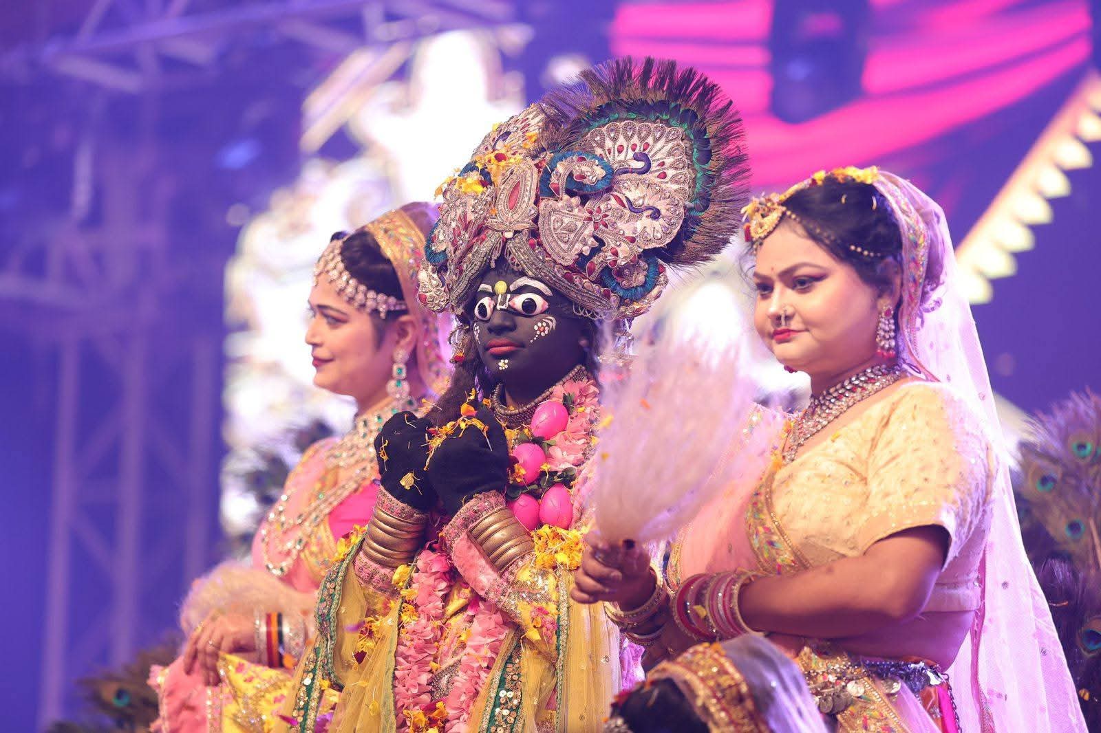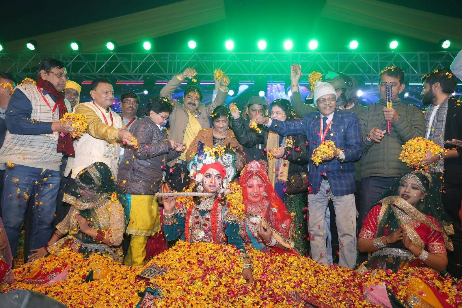 His Holiness Pandit Shri Raghav Mishra, revered Shiv Katha preacher, also blessed the couples with his spiritual presence and heartfelt blessings.